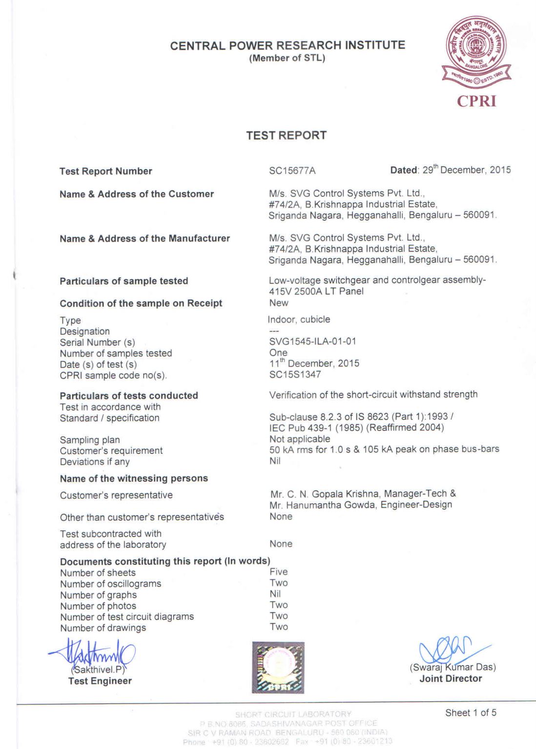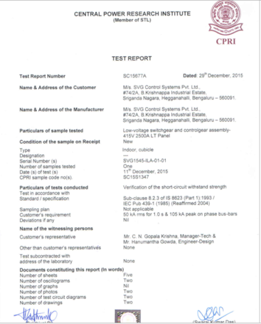 SVG maintains world standard testing procedures and provided with plenty of permits and certifications for standards